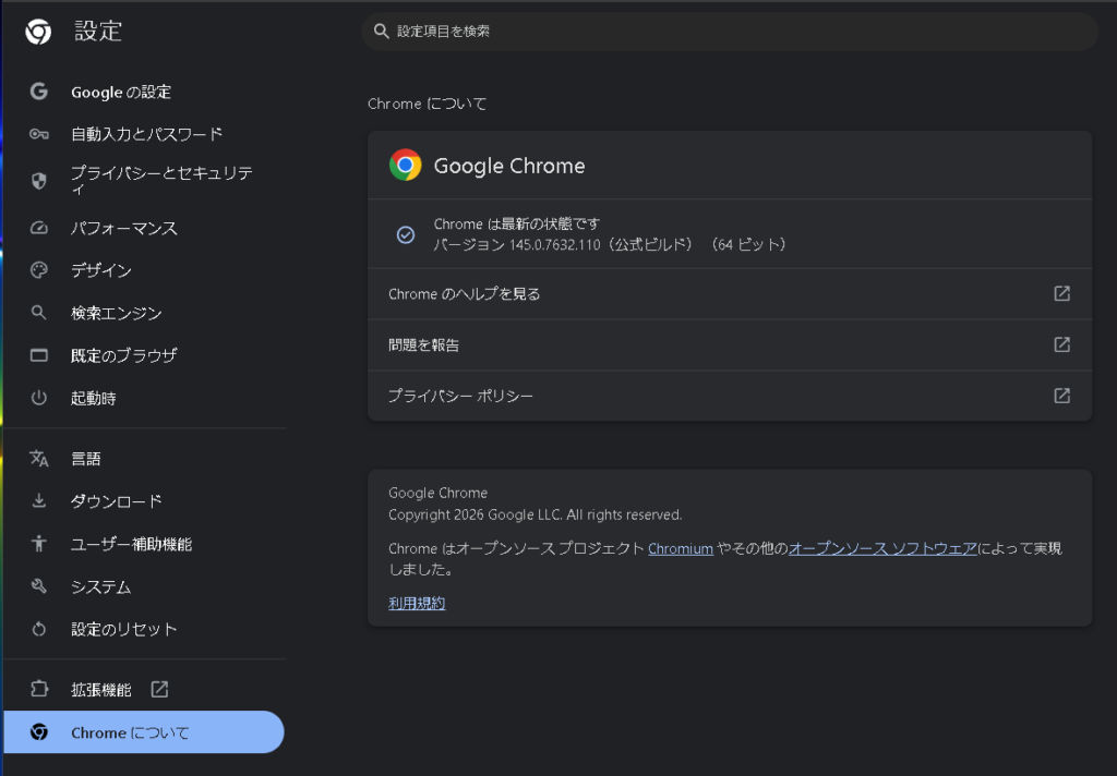 まず確認したいのはChromeが最新状態になっているかどうか。