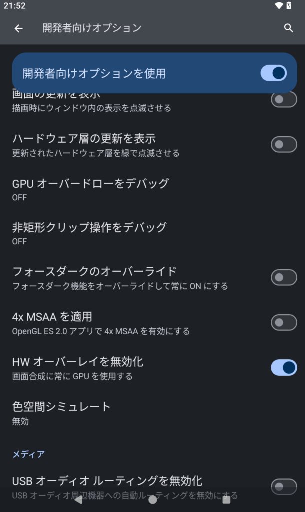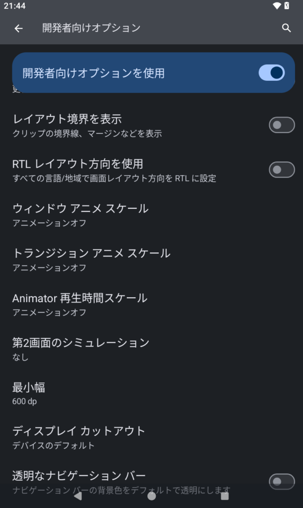 開発者オプションだけでも良いけど、体感を上げるならここもセットが強いです:
