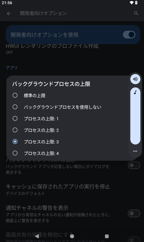 3. (通知いらないサブ機だけ)バックグラウンド上限 → 最大3
