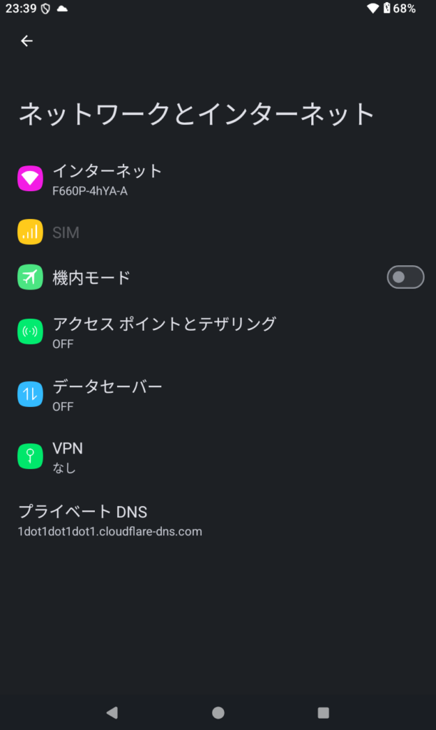 • 設定 → ネットワークとインターネット → プライベートDNS