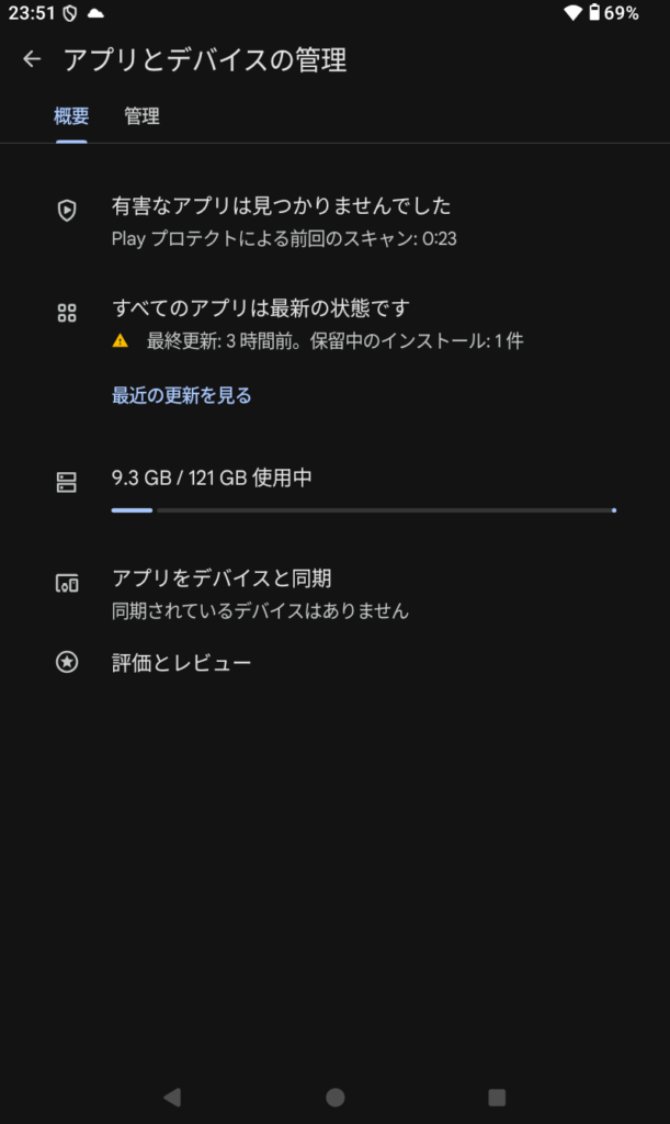 • Playストア → 右上アイコン → アプリとデバイスの管理 → すべて更新